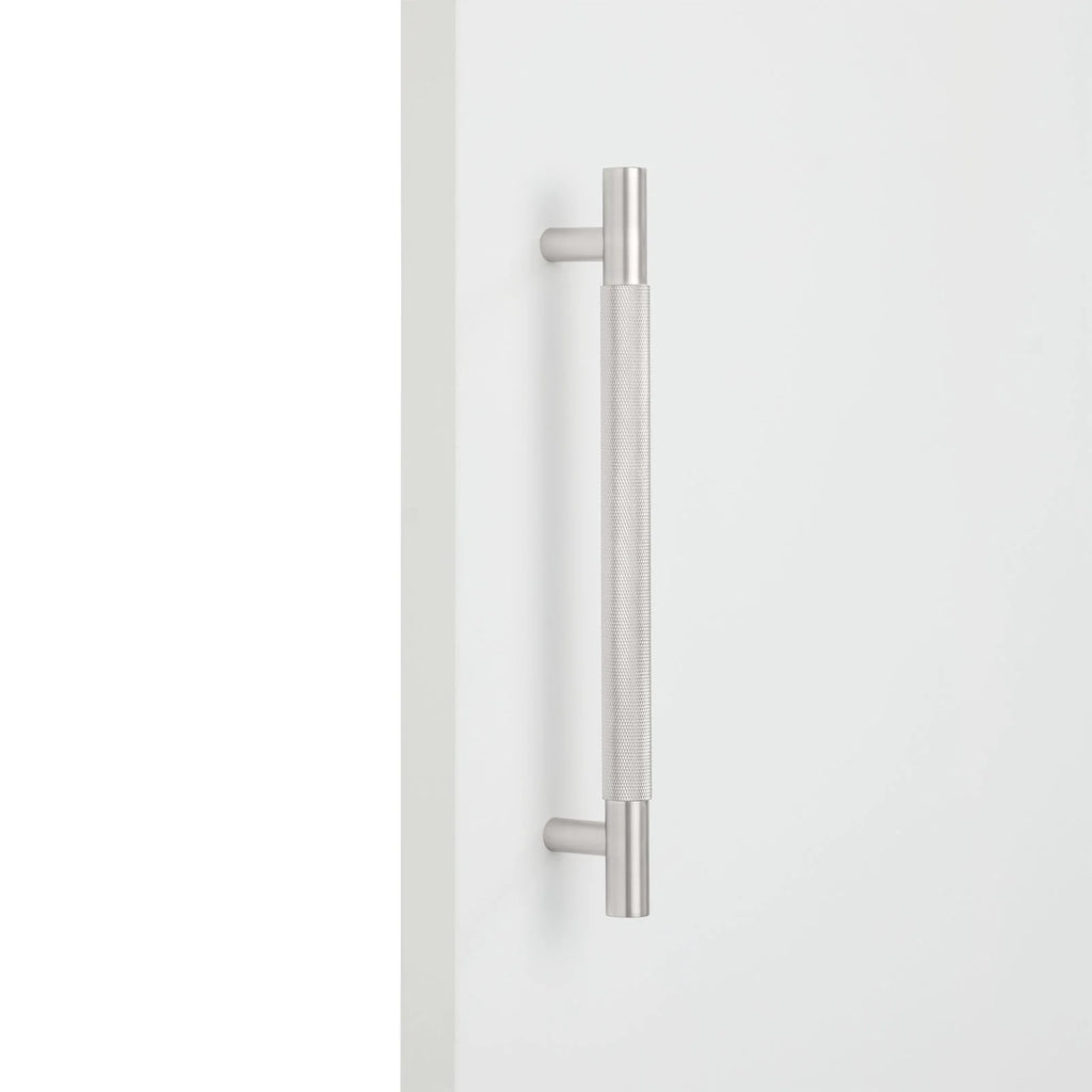 Crafted with a soft textured diamond knurling, each Charmian pull offers a refined grip and a striking visual detail that catches the light just enough to make a statement. Designed to suit our range of knurled cabinet handles, this solid brass pull is perfect as an integrated appliance handle, or feature on a barn door.
