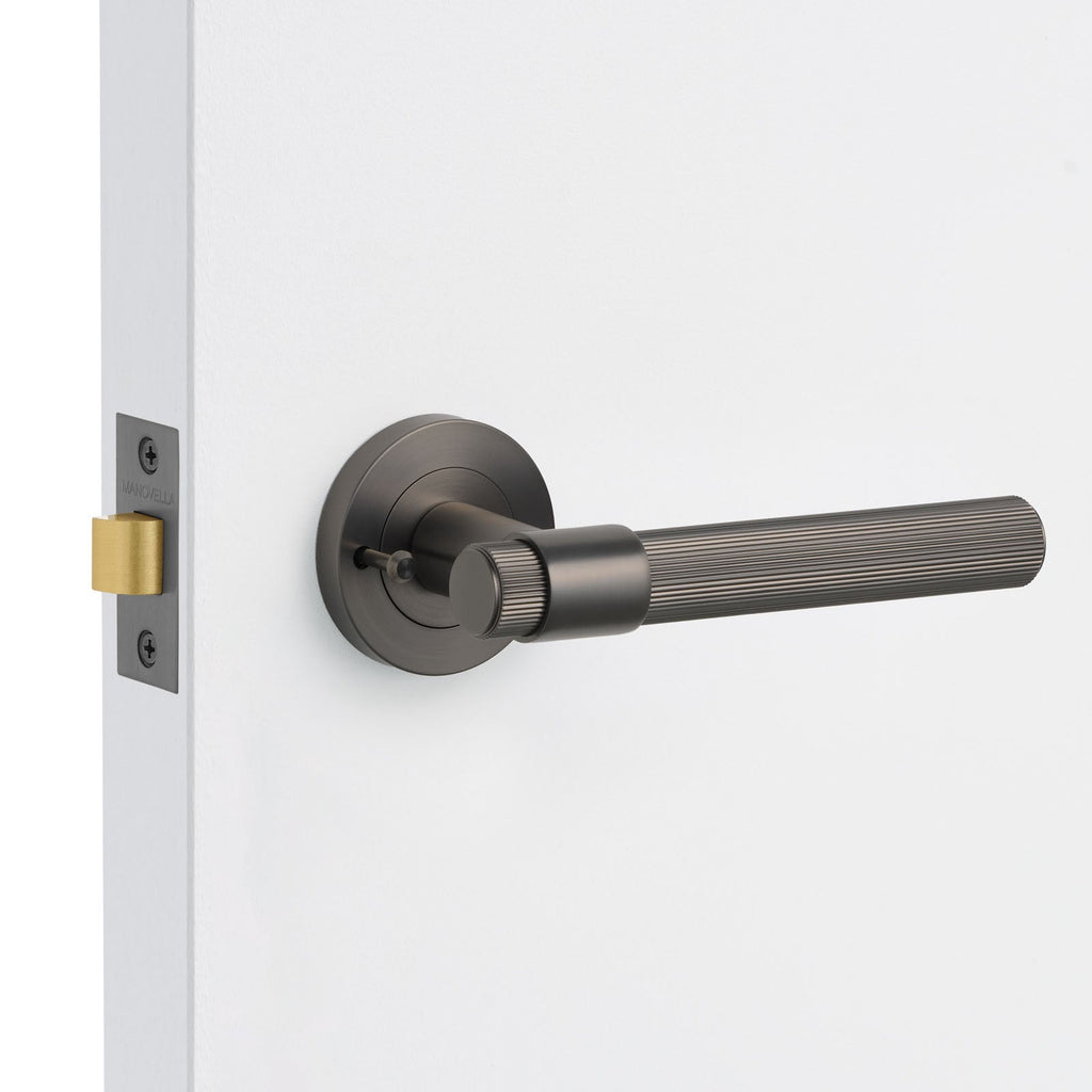 Offering a premium textured design and brass construction, the Rochester privacy lever set in Gunmetal is the ultimate luxury for internal door furniture. With 'soft to the touch' knurling designed to compliment our Charmian cabinet range, the pure 'lux' feel is sure to impress in every way. Backed by our 10 year mechanical guarantee, the Rochester is complete with lever set, latch, and all fixings required to make your installation as easy as possible - just like the rest of our range.