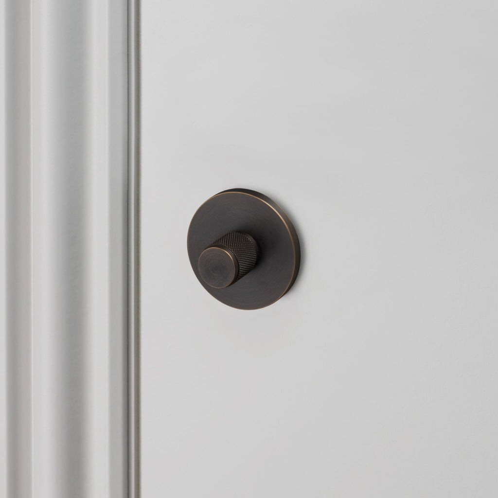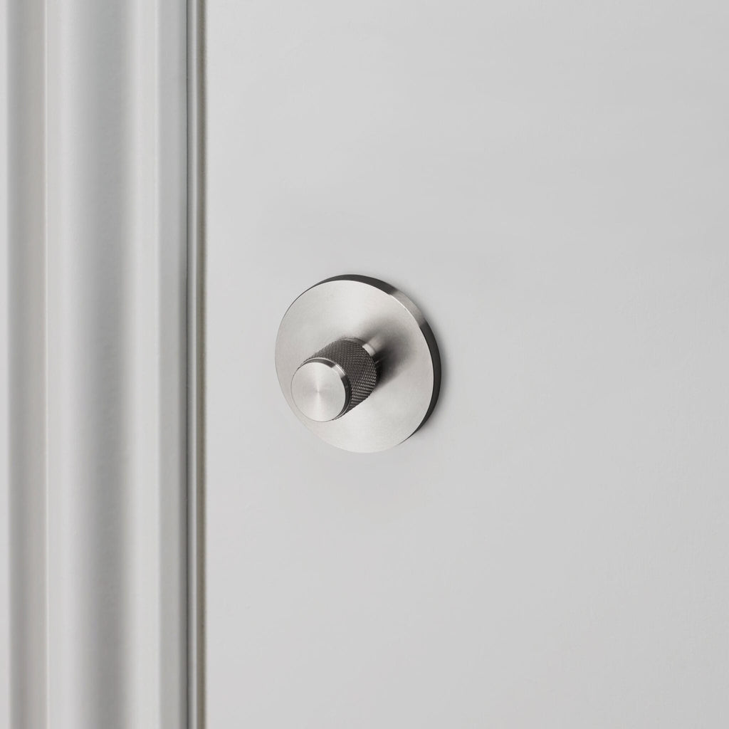 An indoor thumbturn lock made from solid metal. A solid knob with diamond-cut knurled detailing, ensuring pleasure with every touch. Works great on all internal bathroom & toilet doors and can be teamed up with our matching door lever handles.